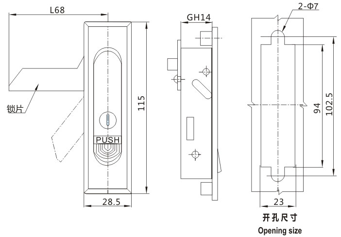 push the button and swing the handle to open or lock。 |