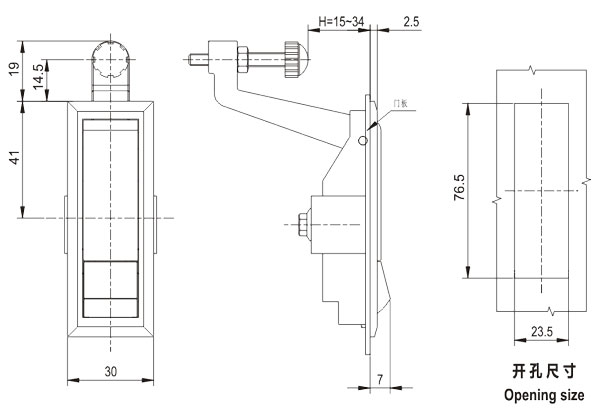 push the button and swing the handle to open or lock。 |