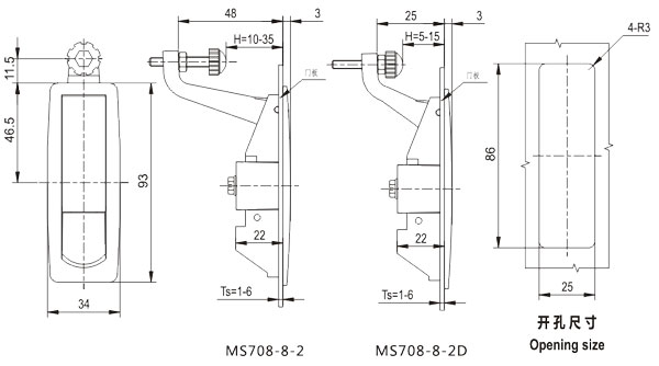 push the button and swing the handle to open or lock。 |