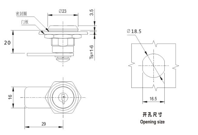 旋转90°开启或锁闭 |