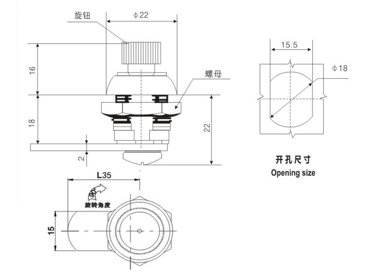 旋转90°开启或锁闭 |