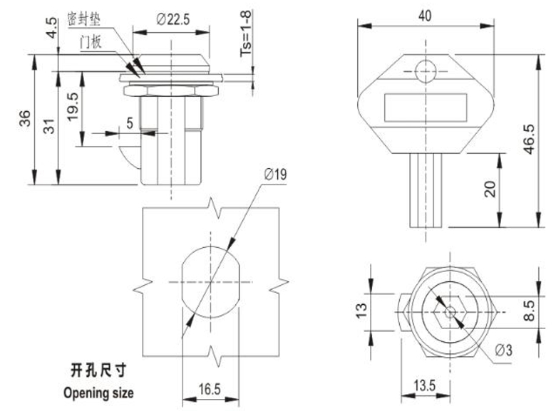 材料:锌合金锁壳和锁芯,碳钢钢栓和螺母