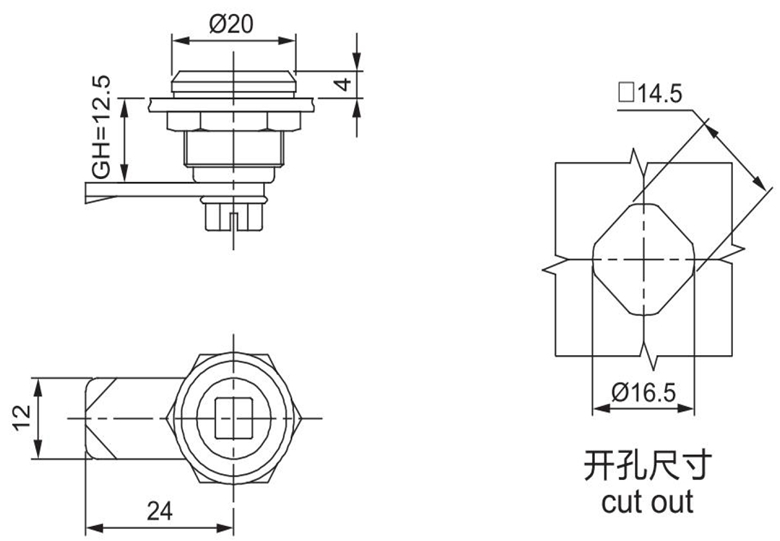 材料:锌合金锁壳和锁芯,碳钢钢栓和螺母