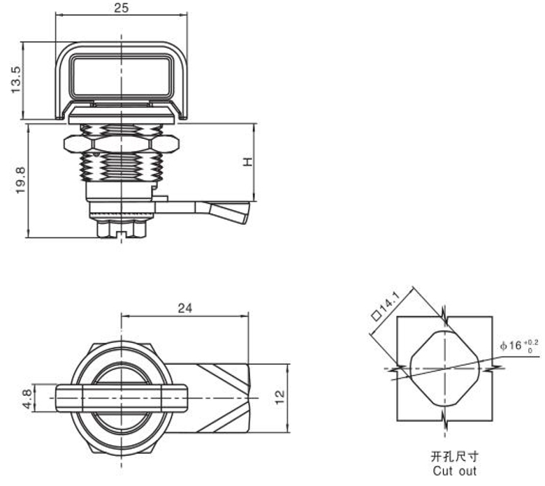 材料:锌合金锁壳,碳钢钢栓和螺母