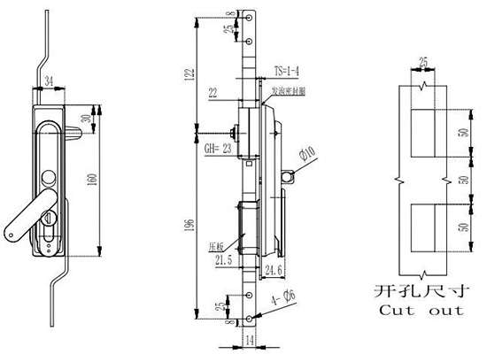 结构说明:旋转90°开启或锁闭