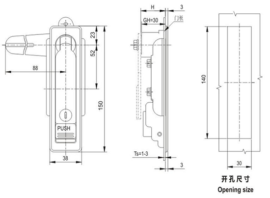 结构说明:旋转90°开启或锁闭