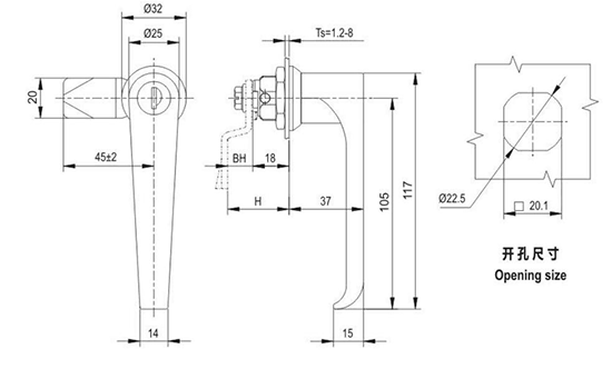 结构说明:旋转90°开启或锁闭