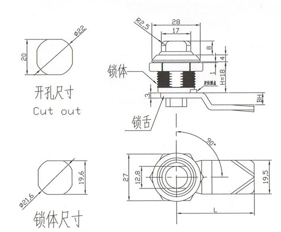结构说明:旋转90°开启或锁闭