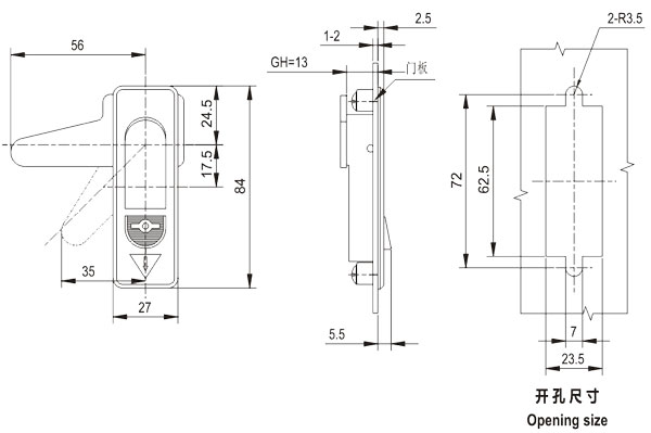push the button and swing 90°the handle to open or lock。 |
